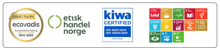 Artisti er ISO-sertifisert i Ledelsessystem for kvalitet (NS-EN ISO 9001:2015) og Ledelsessystem for miljø (NS-EN ISO 14001:2015). Vi er vurdert til GULL av EcoVadis på vårt bærekraftsarbeid og vi er medlem av Etisk Handel Norge. Gjennom vår ISO-sertifisering dekker vi 12 av 17 bærekraftsmål.
